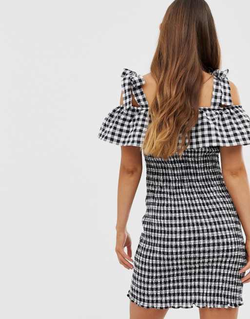 Glamorous Figurbetontes Gesmoktes Kleid Mit Schulterschleifen Und Vichymuster Asos