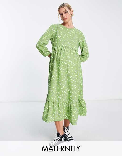 Glamorous Maternity Langarmliges Maxi Hangerkleid In Grun Mit Weissem Blumenmuster Asos